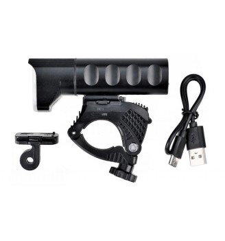 Mocna przednia lampa rowerowa ProX Kastor-X z czterema diodami, akumulatorem 6400 mAh i ładowaniem USB-C. 13 trybów pracy, do 14 h świecenia.