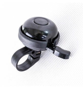 Mini dzwonek rowerowy w kolorze czarnym, wykonany z aluminium i PVC. Montowany na kierownicę jedną śrubą.