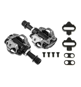 Wytrzymałe pedały zatrzaskowe Shimano SPD PD-M540 z otwartą konstrukcją, regulacją siły wpięcia i uszczelnianymi łożyskami. W zestawie bloki SM-SH51.