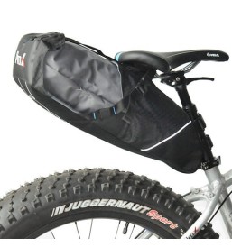 Pojemna, wodoodporna sakwa podsiodłowa PROX do bikepackingu – z wewnętrznym workiem, mocowaniem na paski i odblaskowymi elementami.