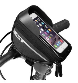 Kompaktowa sakwa na kierownicę PROX Nebraska 295 z kieszenią na smartfona do 6,4", z mocowaniem na rzepy i odblaskowymi elementami.