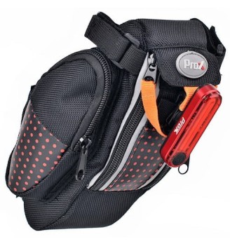 Kompaktowa sakwa podsiodłowa PROX OREGON 039 o pojemności 1,5L – z odblaskami, usztywnieniem i miejscem na tylną lampkę.